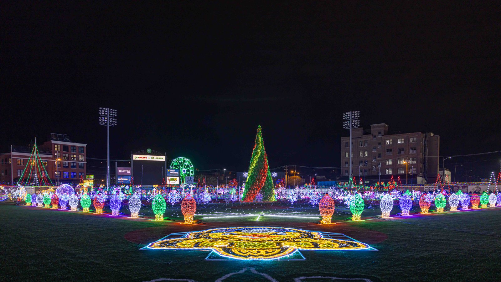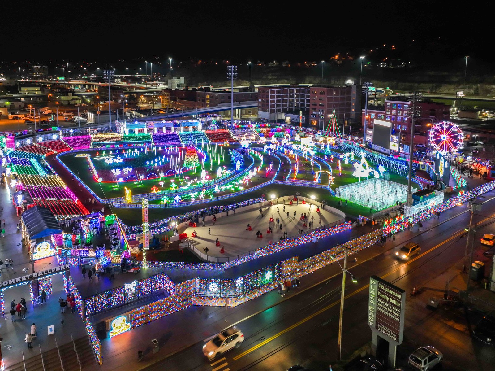 GoMart Ballpark, usually buzzing with baseball cheers, transformed into a holiday spectacle this year. Our team – drones in tow – was there to soak it all in, from the first twinkle to the grand finale of this year’s Light the Night.
